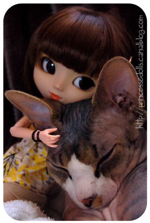 La voici avec Zoreille, mon petit sphynx d'amour!